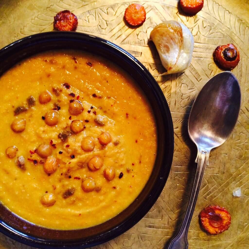 From Monroe’s website, here’s a more recent example in the form of roasted carrot, chickpea, and garlic soup.